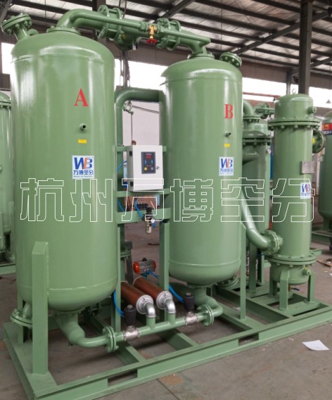 WAL无热再生干燥机是根据变压吸附原理对压缩空气进行干燥的一种设备,加压状态下吸附压缩空气中的水份,使压缩空气等到干燥,减压时用一部分干燥压缩空气吹扫吸附剂,使吸附剂得以再生,两塔相互交替,循环使用从而得到干燥压缩空气。根据压缩空气常压露点的不同,选择不同的吸附剂,常用吸附剂有活性氧化铝,分子筛等。